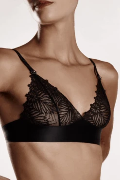 Sexy and seductive, the luxurious Destinos Bra is the perfect pairing with the Destinos Dark Panty, but also makes a striking statement all by itself. It’s made from delicate Italian lurex lace and elastic strips with silver lurex, French stretch silk and pearl details. Thanks to the pearl summary closures, the straps can be interchanged and crossed in various ways. You can have two bras in one!