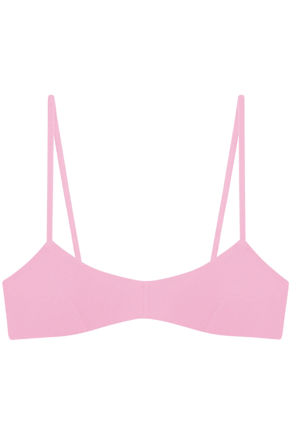 Get ready to make a splash with the Lucy Wireless Bikini Top! Made from a soft and textured Italian material, this seashell pink bikini top perfectly blends style and comfort. Based on Dora Larsen’s famous fits, it offers both support and a flattering shape. Say goodbye to uncomfortable swimwear and hello to beachy bliss!