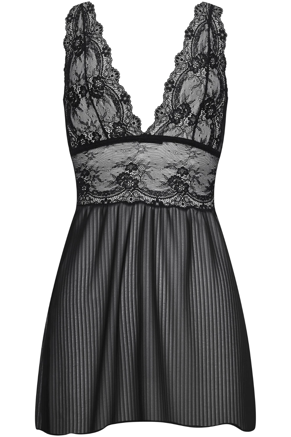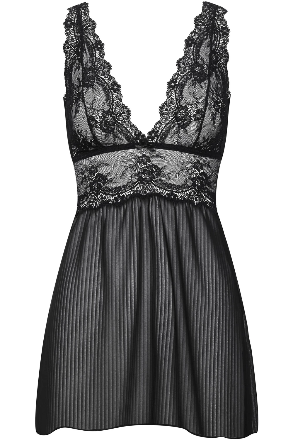 Timeless and classic, the Grace Nightie from Cadolle combines soft floral scalloped lace with striped chiffon. The top features unpadded & unwired triangular cups with wide shoulder straps. The bottom has a lightly flared fit.