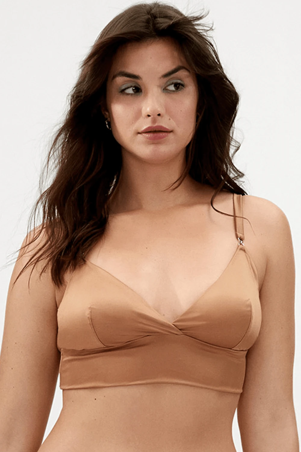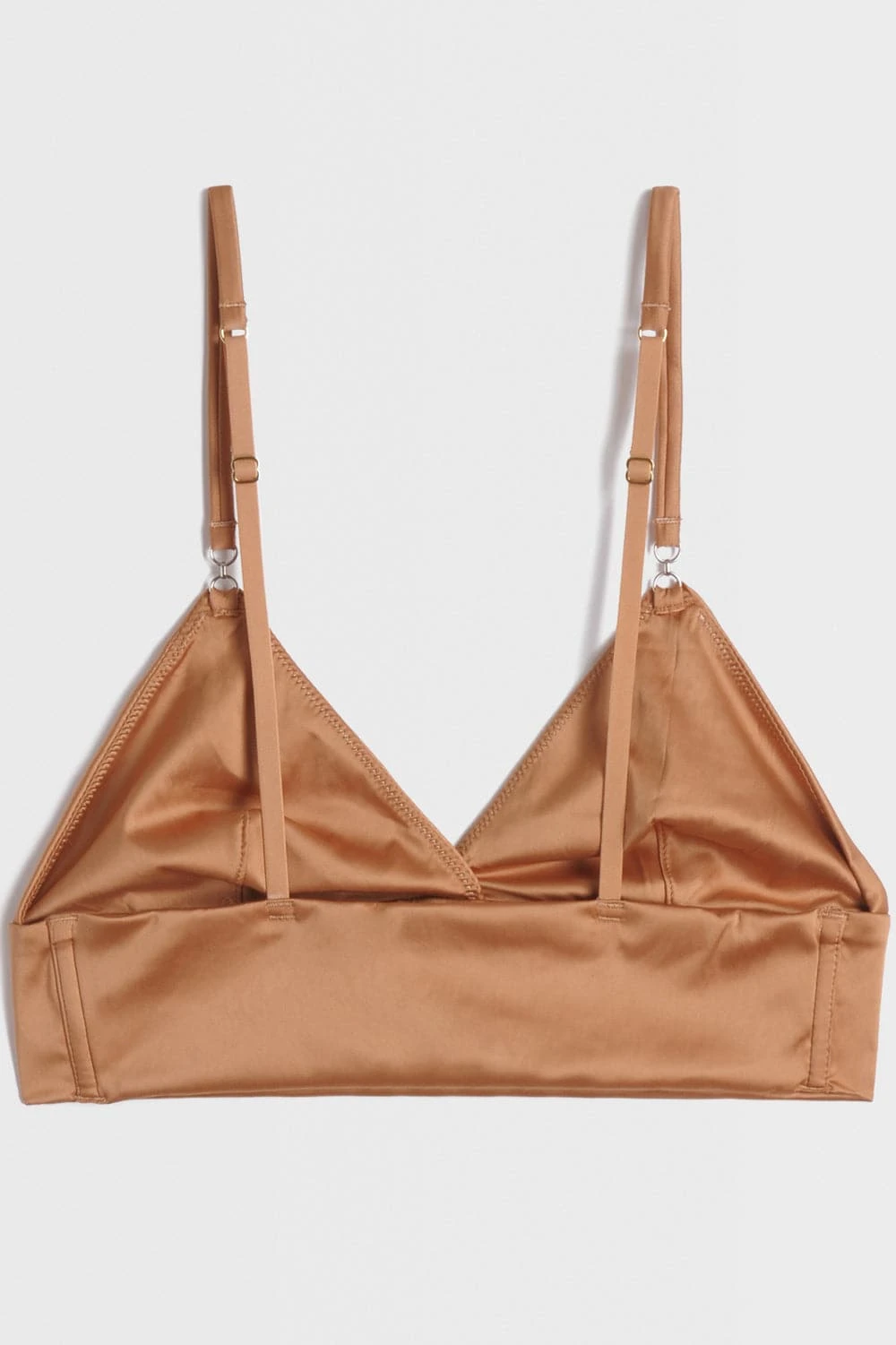 Martine is our favourite everyday sexy bustier bra. Without underwires, this bustier bra offers you a feeling of freedom. The sophisticated caramel satin looks flattering on all skin tones.