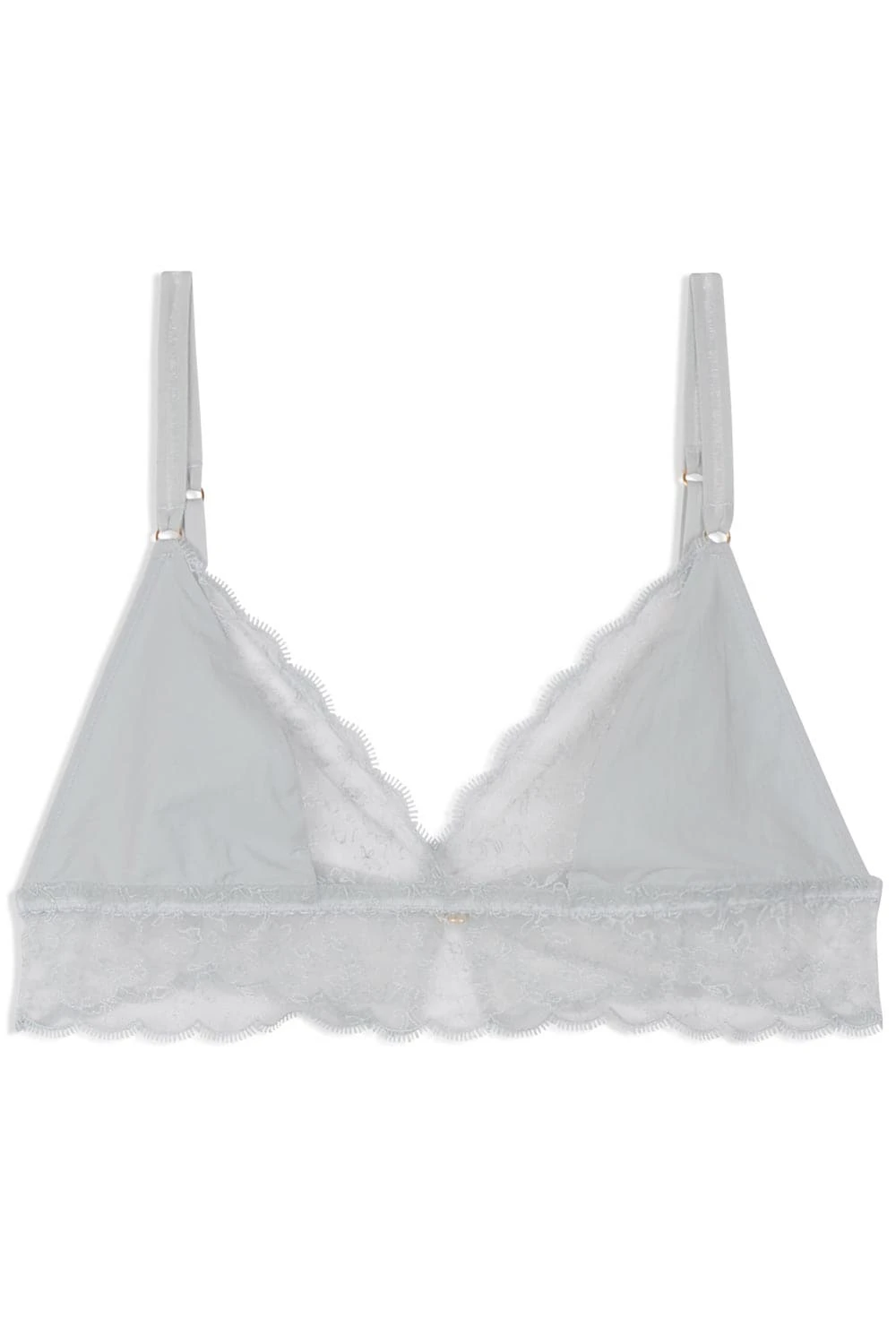 This bra is the delicateness itself. The sophisticated embroidery perfectly matches with the blue and soft micro. Without underwire, this bra offers you a feeling of freedom.