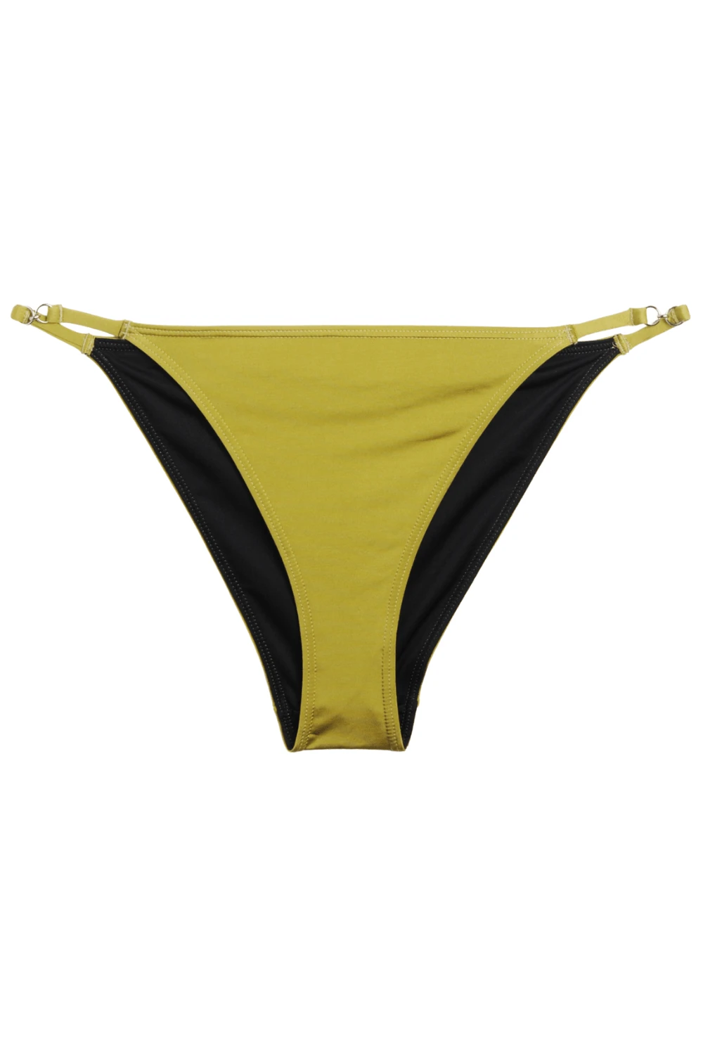 The Limoncello bikini, with these ring accessories on each side, can be worn high on the hips with a slightly indented cut to lengthen your figure or lower like a classic bottom, this piece will highlight all women while ensuring absolute comfort. The fabric contains more than 80% recycled fibres.