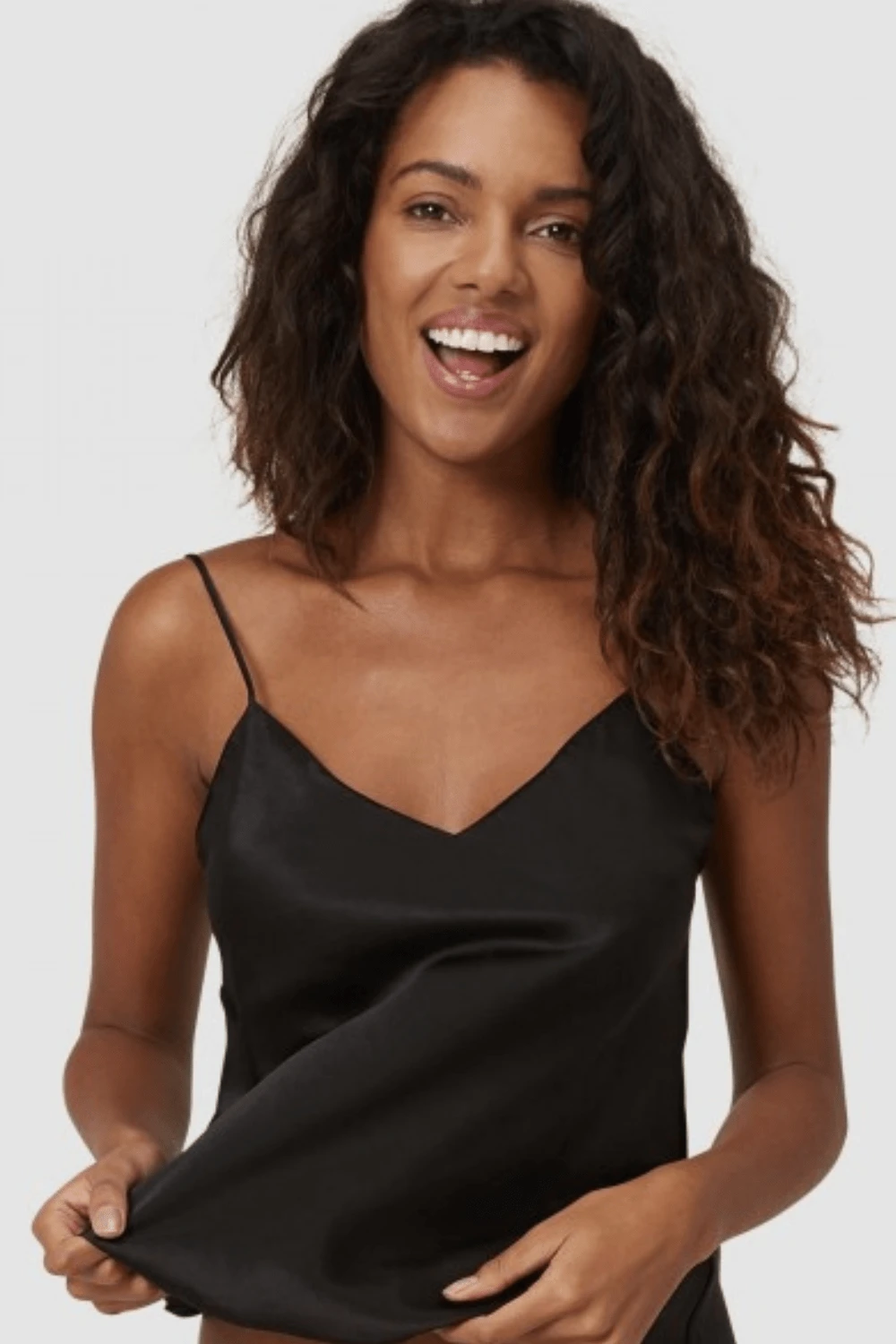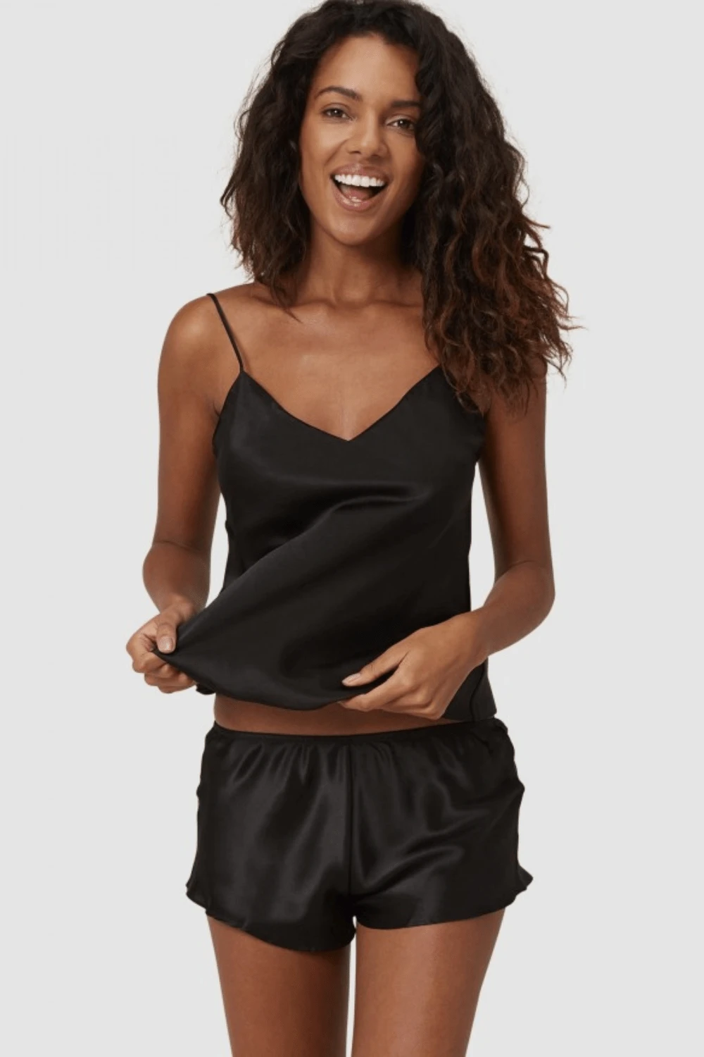 Timeless and classic, discover the Dream camisole Simone Pรฉrรจle. Crafted from beautiful black silk it features a flattering V neckline with adjustable shoulder straps. Why not wear yours as outerwear with a jacket or as luxurious nightwear set with the matching Dream shorts and pants.